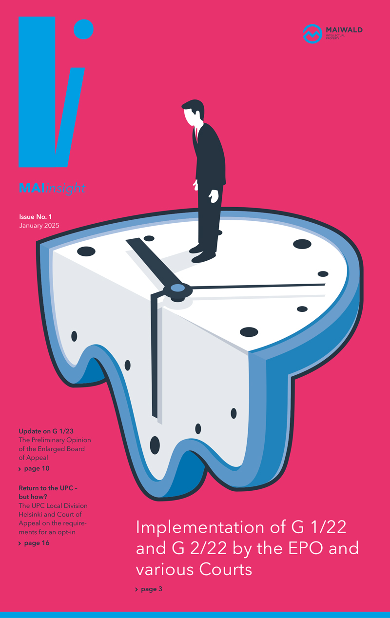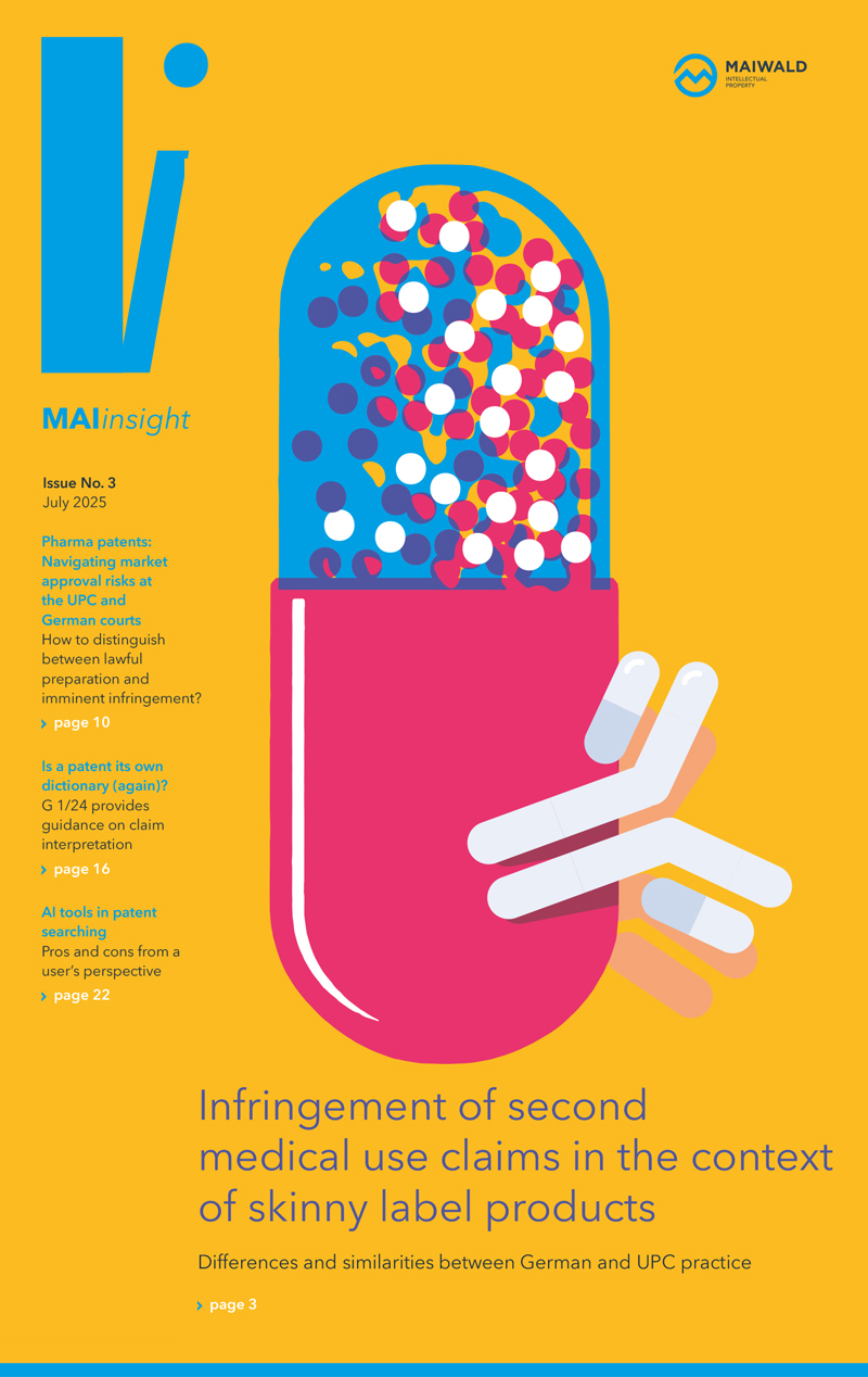 The fourth issue also contains up-to-date information on decision G 2/24, which has just been published by the Enlarged Board of Appeal of the EPO, and on the new proposal G 1/25. In addition, MAIinsight Issue 4 deals with the EPO’s approach to inventive step in the case of non-obvious alternatives. With regard to the Unified Patent Court (UPC), issue 4 provides a detailed insight into the preservation of evidence (saisie) before the UPC and a discussion of the upcoming proposals for a unified supplementary protection certificate (uSPC) with regard to how the UPC’s jurisdiction over SPCs may change in the future.